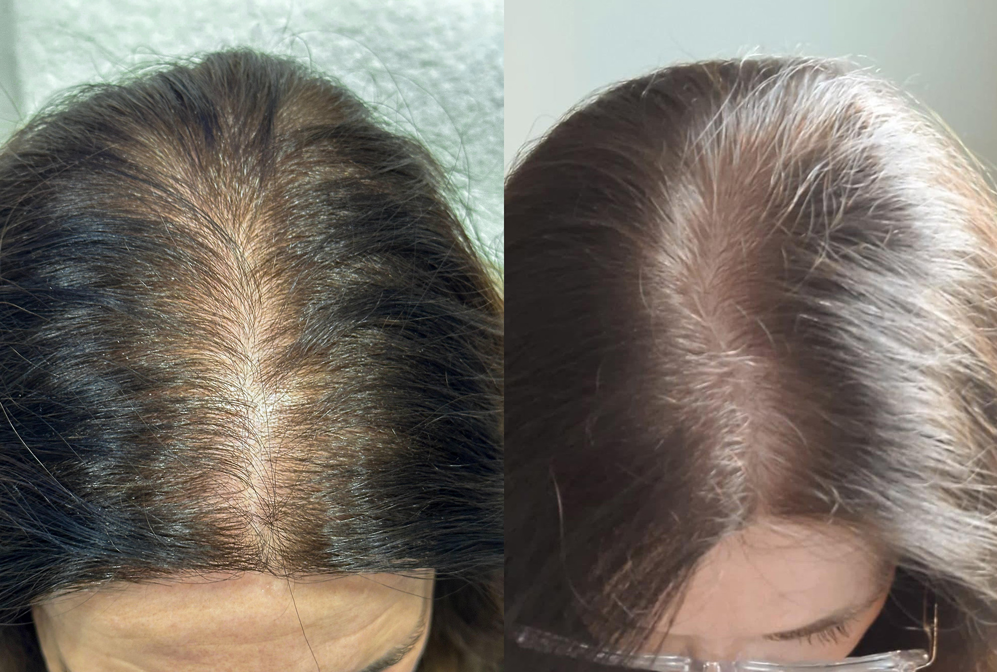 - Poslije: Razdjeljak je znatno suženi, gustoća vlasi osjetno povećana, vlasište se gotovo ne nazire.